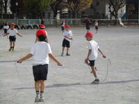 縄跳びの練習。後ろとびやあやとび、二重跳びにも挑戦し、