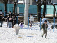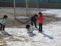 校庭にもたくさんの雪が積もり、凍っているところもあったため、