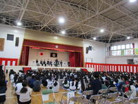1年生の代表児童は、3学期に頑張ったことと2年生で頑張りたいことを話してくれました。