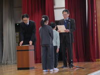 各学級の代表児童が校長先生から修了証を受け取りました。