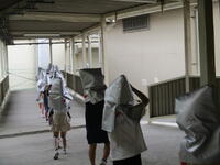 今日は図工の学習で、新聞紙を使って製作をしました。