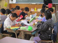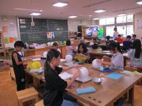 今日は、図工専科の先生も一緒に、広い図工室で作りました。