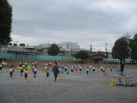 温かい日差しのもと、校庭ではたくさんの班がおにごっこをして楽しみました。