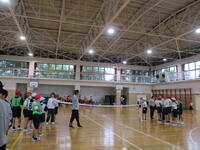 雨模様のため、体育館でキャンプファイヤーを行いました。友情の火、勇気の火、協力の火、心の火を囲んで、ゲームやダンスを楽しみました。