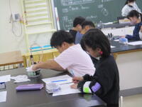 丸底フラスコをお湯で温めるので、安全に気をつけて活動しました。