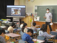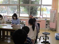 他学年の作品の作り方や工夫したところなどを、来てくださった方に説明しました。