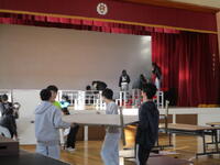 6時間目に6年生が教職員と一緒に会場準備をしました。