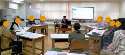 後半は子どもたちはいつものようにグループ活動、保護者は吉本先生と懇親会でした。和やかな雰囲気の中、これまでの先生の経験を改めてうかがったり、保護者が今悩んでいることなどについて一緒に話し合ったりしました。