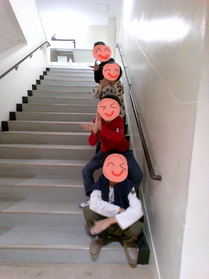 ↑なぜか階段に一列に並んで座って先生がやって来るのを待つ子どもたち^^