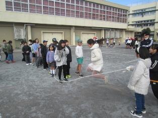 12月15日(月)中休み、1・2年生が、「にこにこジャンプ」の記録会を行いました。