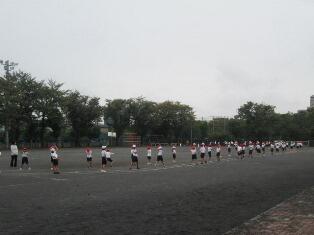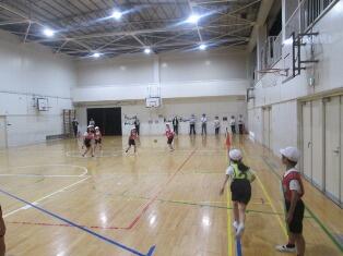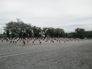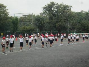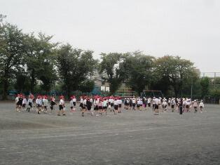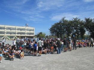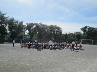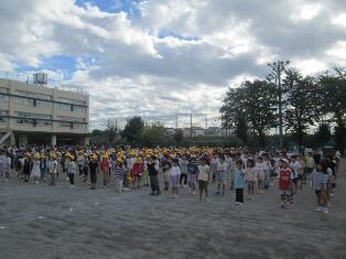 10月9日(木)体育朝会を行いました。運動会へ向けて、隊形や児童席の確認を行いました。