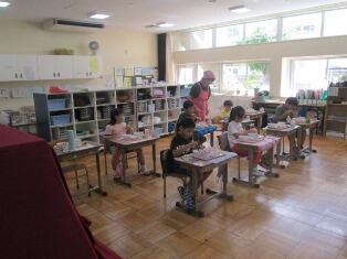 10月14日(火)2年生が上砂図書館へ学級ごとに見学に行きました。写真は2年3組の様子です。