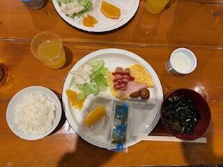 曇り空の朝でした。6時30分に起床し、身支度を整えて、朝の会を行いました。朝食の後は、閉校式を済ませて、木工体験を行う施設に移動します。