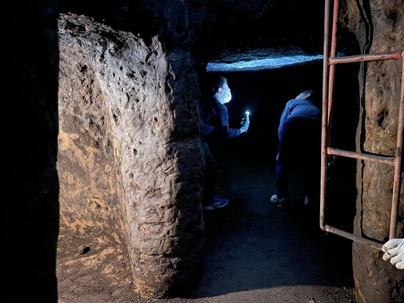 立川市民科の学習で、地域のうど農家を見学しました。うど室にも入らせていただきました。写真は1組とくわのみ学級の様子です。