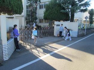 11月4日(火)三連休明けの朝です。6年生があいさつ運動に取り組んでいました。