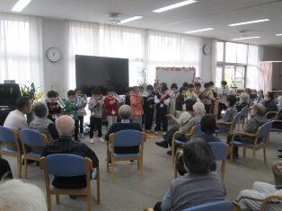 11月5日(水)2年1組が上砂地域福祉サービスセンターを訪問し、施設利用者の方々と交流をしました。歌や演奏を披露したり、一緒に体操を行ったりしました。最後にプレゼントをお渡ししました。