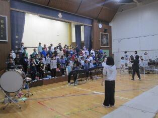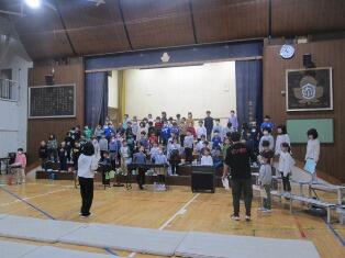 運動会に向けて音楽集会がありました。本番で歌う「ゴーゴーゴー」の歌を練習しました。