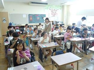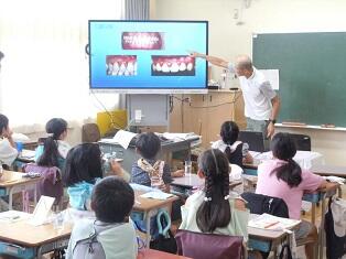 7月3日(木)4年生において歯科校医による歯磨き指導がありました。