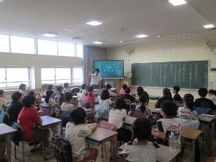 6月17日(火)4年生において、東京都教育委員会「笑顔と学びの体験活動プロジェクト」として元女子バレーボール日本代表の大山加奈選手による講演会と出前授業がありました。