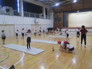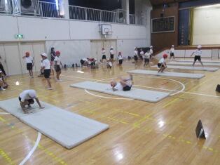9月2日(火)2校時、3年1組の体育の授業の様子です。マット運動に取り組みました。