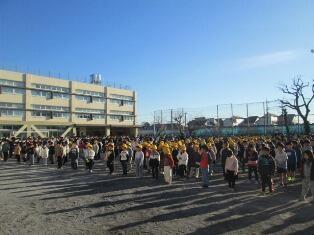 一列に並んだ和太鼓クラブ。今年度2回目の