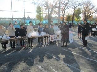 12月1日(月)全校朝会でPTAから開校記念日の祝い品として、学級用の遊び道具をいただきました。
