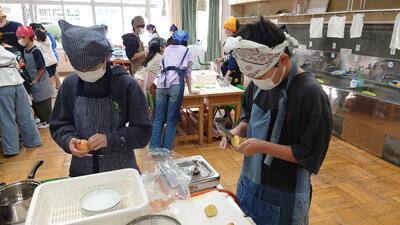 じゃがいもは芽もあったり形もゴツゴツしていて、皮をむくのが大変そうでしたが、時間をかけながら丁寧に皮をむきつくっていました。