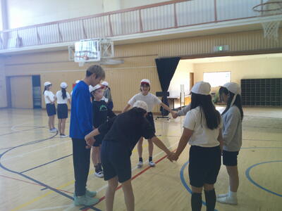 実際に一人一人がボールを手にしてプロの選手に教えてもらうという貴重な体験をすることができ、楽しみながら授業を行うことができました。