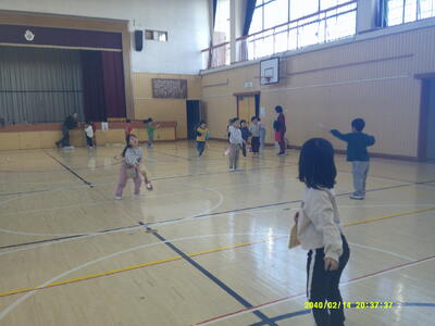 はねつきでは、うまく前に飛ばず「むずかしい。」といっていましたが、とても楽しそうに遊んでいました。