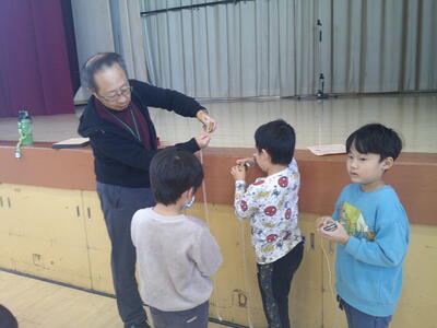 地域の「昔遊びの先生」たちはとても上手で、自分たちも頑張ってできるようになりたいと、いろいろな遊びに挑戦して頑張っていました。