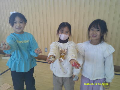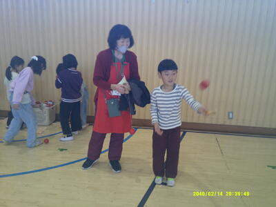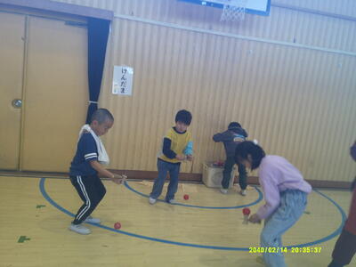 お手玉は投げて取るのが難しいようでしたが、最後には連続で取れる子も増えてきました。