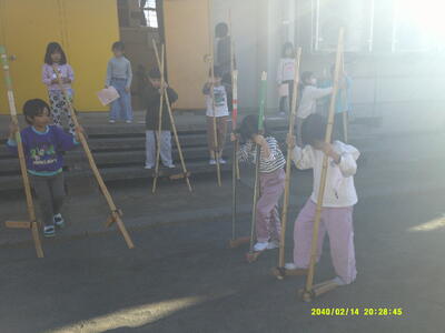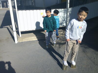 かんぽっくりはみんなすぐにのれるようになっていましたが、竹馬はバランスをとるのがかなりむずかしいようでした。