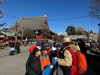 浅草寺は、都内最古の寺院であり、歴史的な建物がたくさんあって、子どもたちは興味をもって見学していました。