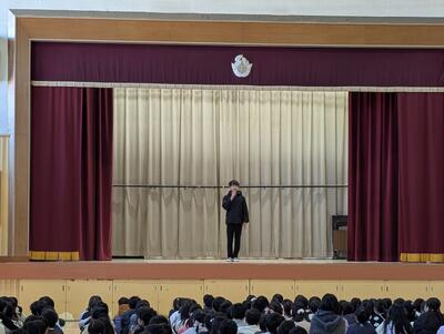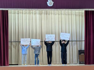 12月から代表委員会で、発表に向けて取り組み、休み時間などに集まって、たくさん練習していたので、全校のみんなにもよく伝わる発表をすることができました。