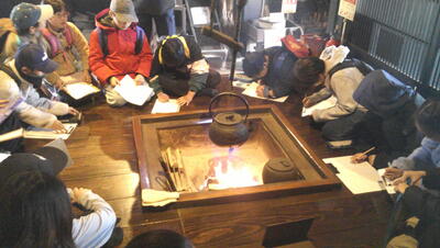 中は少し寒かったのですが、古民家園の方がいろりに火を入れてくださったので、その温かさをじっくり味わっていました。