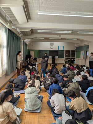 はじめに、地域のご高齢の方からの話があり、子どもたちは真剣に聞いていました