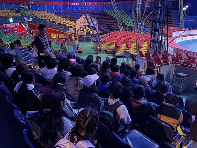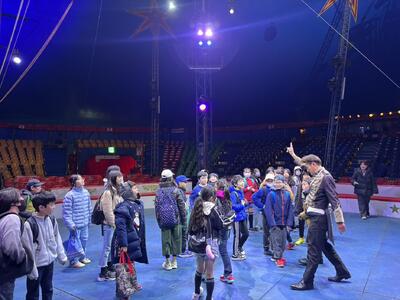 これは、現在立川市で行われている木下大サーカスと立川市産業観光課と学校の連携事業で、木下大サーカスの施設やショーを見学し、地域の産業について理解を深めようというものです。