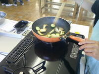 はしで具材をひっくり返したり、慣れた手つきで炒めたりしている子もいました。