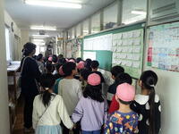 今日は、1年生が、近隣の幼稚園・保育園の園児を迎えて、学校の中を案内したり、一緒にお勉強をしたりしました。
