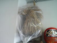下の写真は、祭りの松明回しで使われるもので、学校の玄関に展示しています。