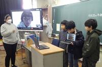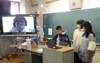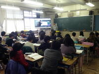 4年生の社会科の様子です。(4年生教室と小笠原村の中継授業です!?)