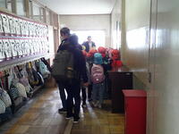 広い校舎を案内してもらいながら歩いていますが、静かに廊下を歩くことや、右側通行もしっかりとできていて、小学生になる準備がばっちりですね!!