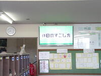 今日の昇降口のモニターは、『休日のすごし方』でした。