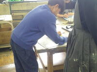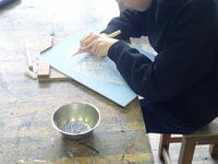 彫刻刀を使い削っていき、墨を塗ります。