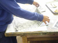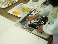 こちらは4年生の図工。版画を作成しています。