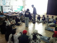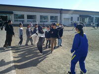いつもは1年生から6年生までの異学年集団で遊ぶ「たてわり班活動」ですが、今日は職場体験で来校している中学生も一緒に遊ぶことができました。