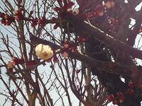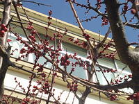 職員室前の梅ですが、かなりふっくらした蕾と、中には咲き始めているものもありました。