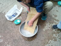 石鹸と洗濯板を使用し、それぞれ工夫して泡を立てて汚れを落としていました。