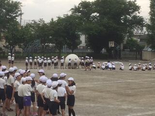 案の定、全校練習は体育館に。でも、練習が終わるころには、雨がやみました。