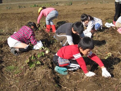 11月7日(火)のとても気持ち良い天気の中、1・2年生が西砂ホームさんの畑で芋ほりを行ってきました。1学期に2年生が、サツマイモの苗植えをさせていただき、それを収穫というわけです。地元農家の榎本さんにもご指導いただきながら、ポカポカ陽気のもと、皆楽しく活動してきました。西砂ホームさんありがとうございます。